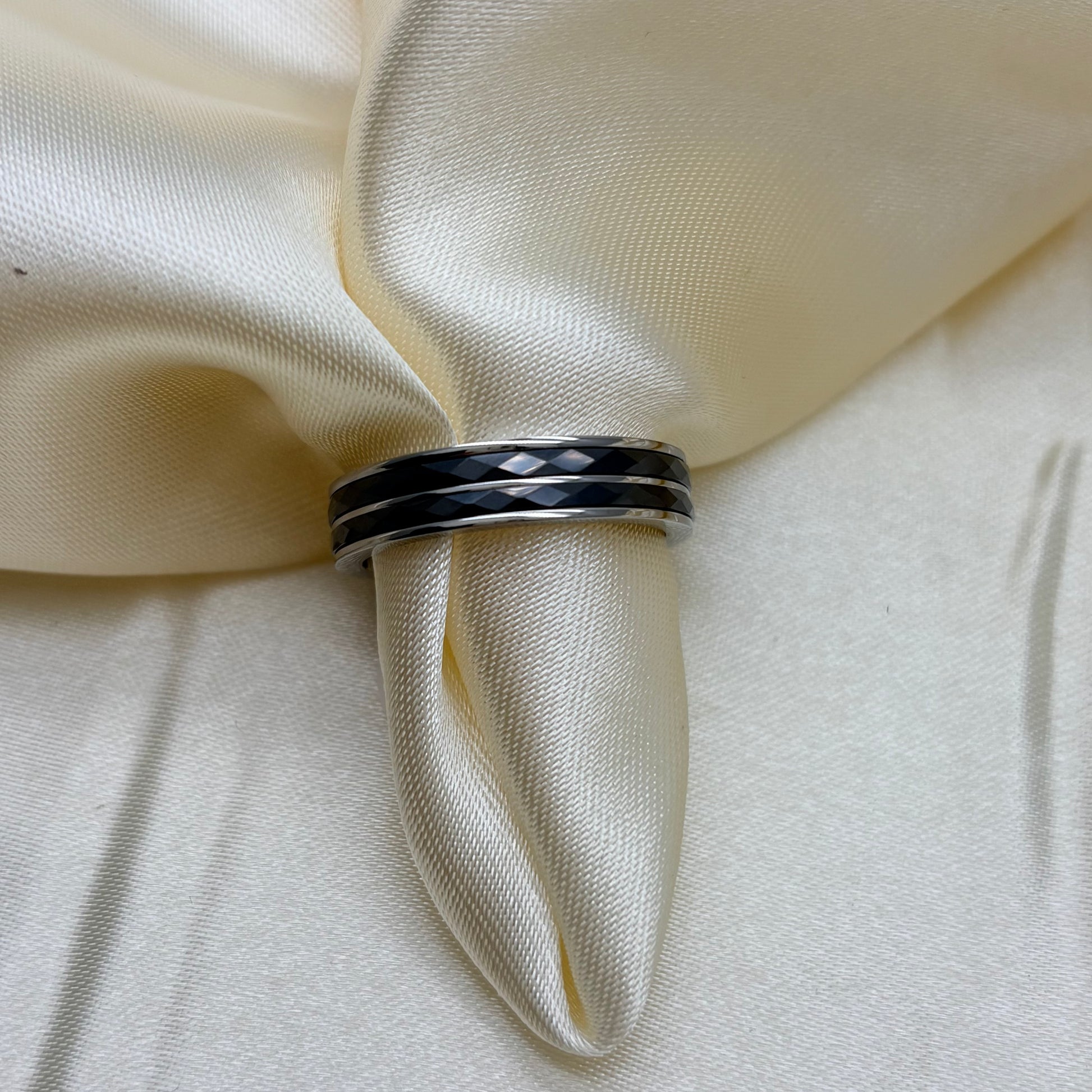 Anillo en acero y tungsteno en negro con plateado