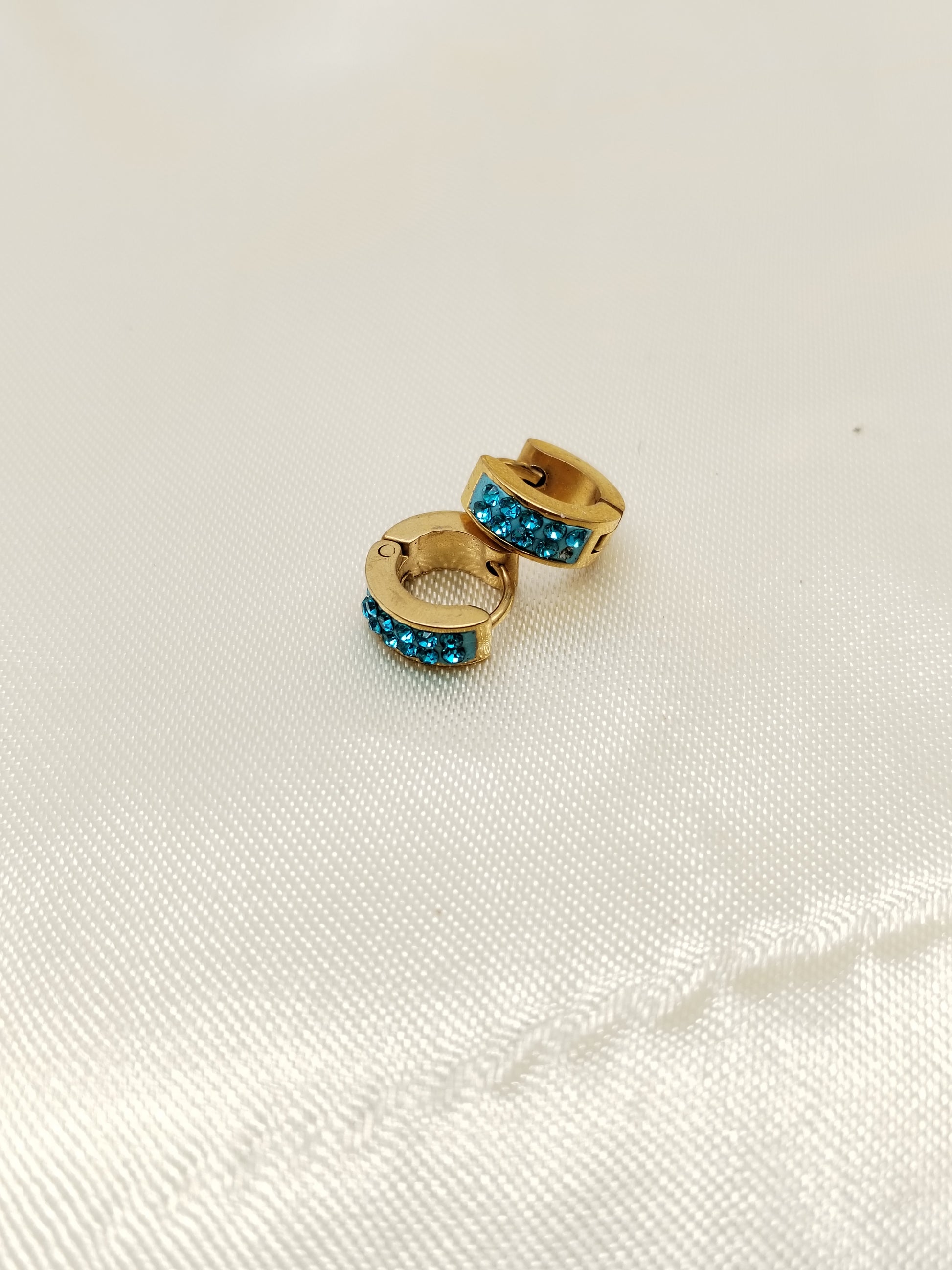 Arete en acero dorado con piedras celestes