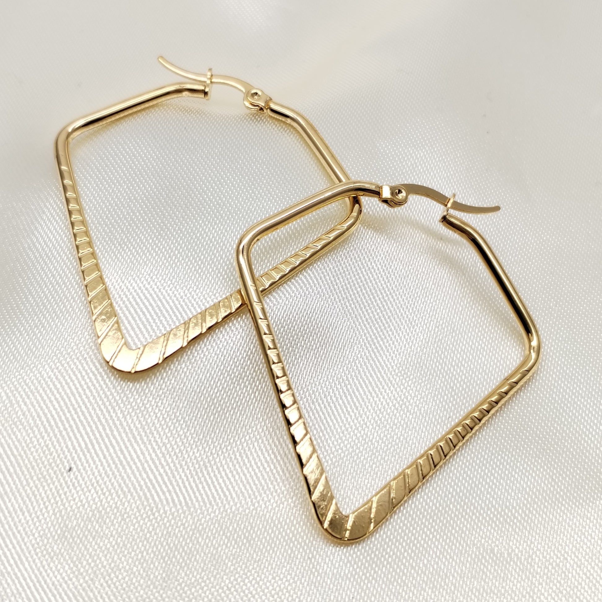 Arete argolla diamante mediana labrada dorado