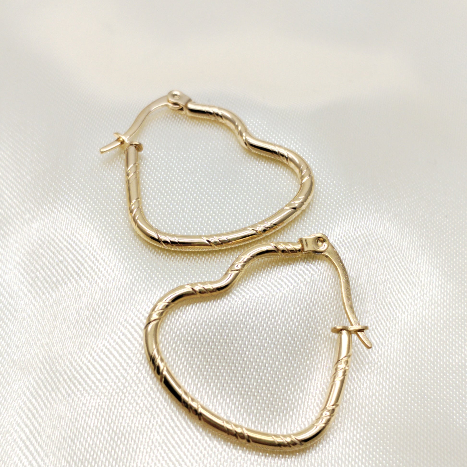 Arete argolla corazón en acero labrada dorado