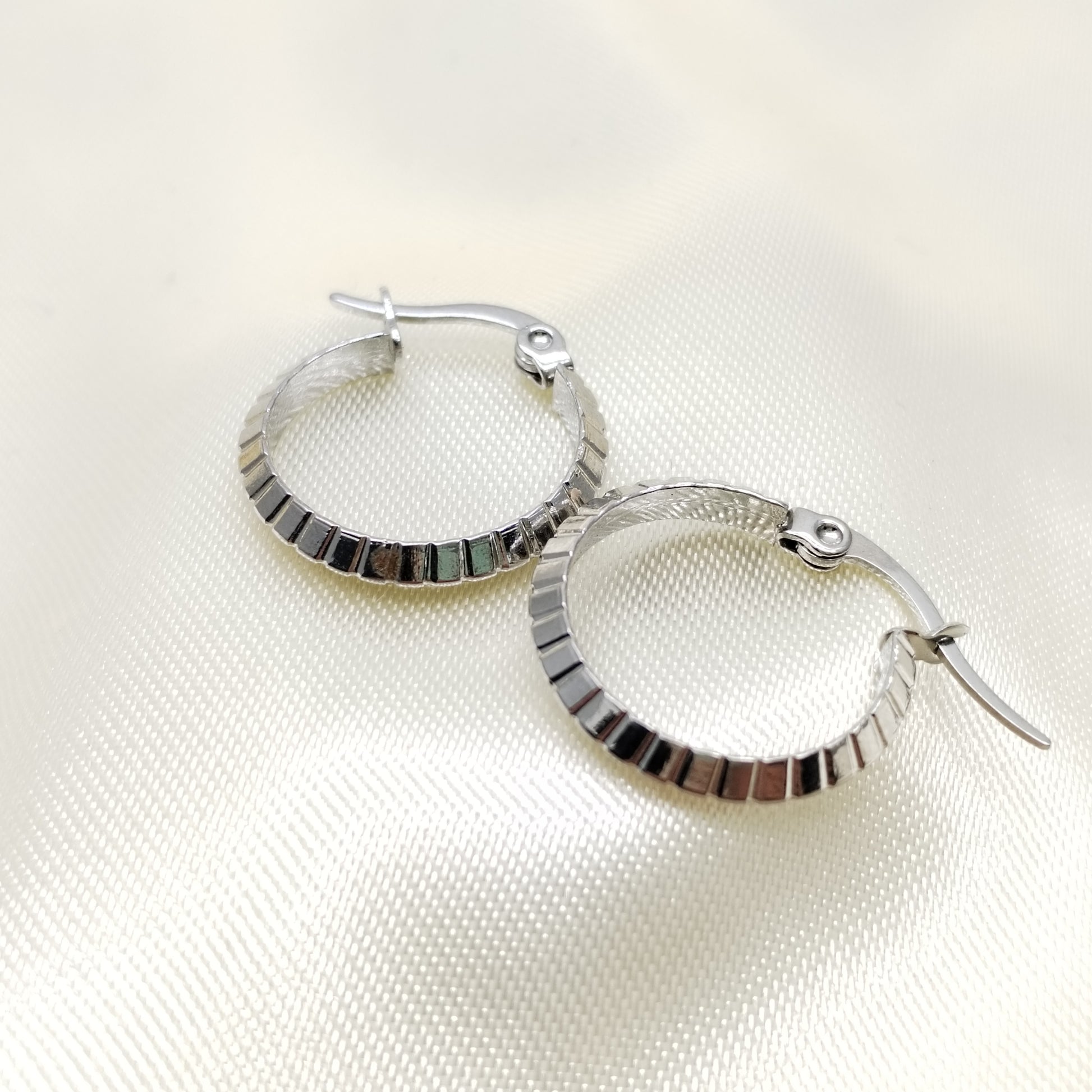 Arete argolla pequeña labrada plateada