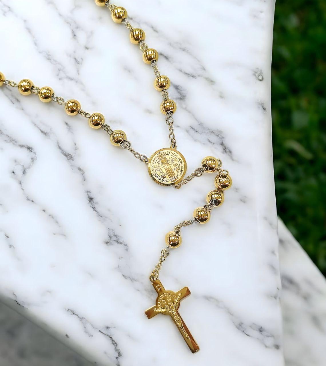ROSARIO EN ACERO DORADO PARA HOMBRE