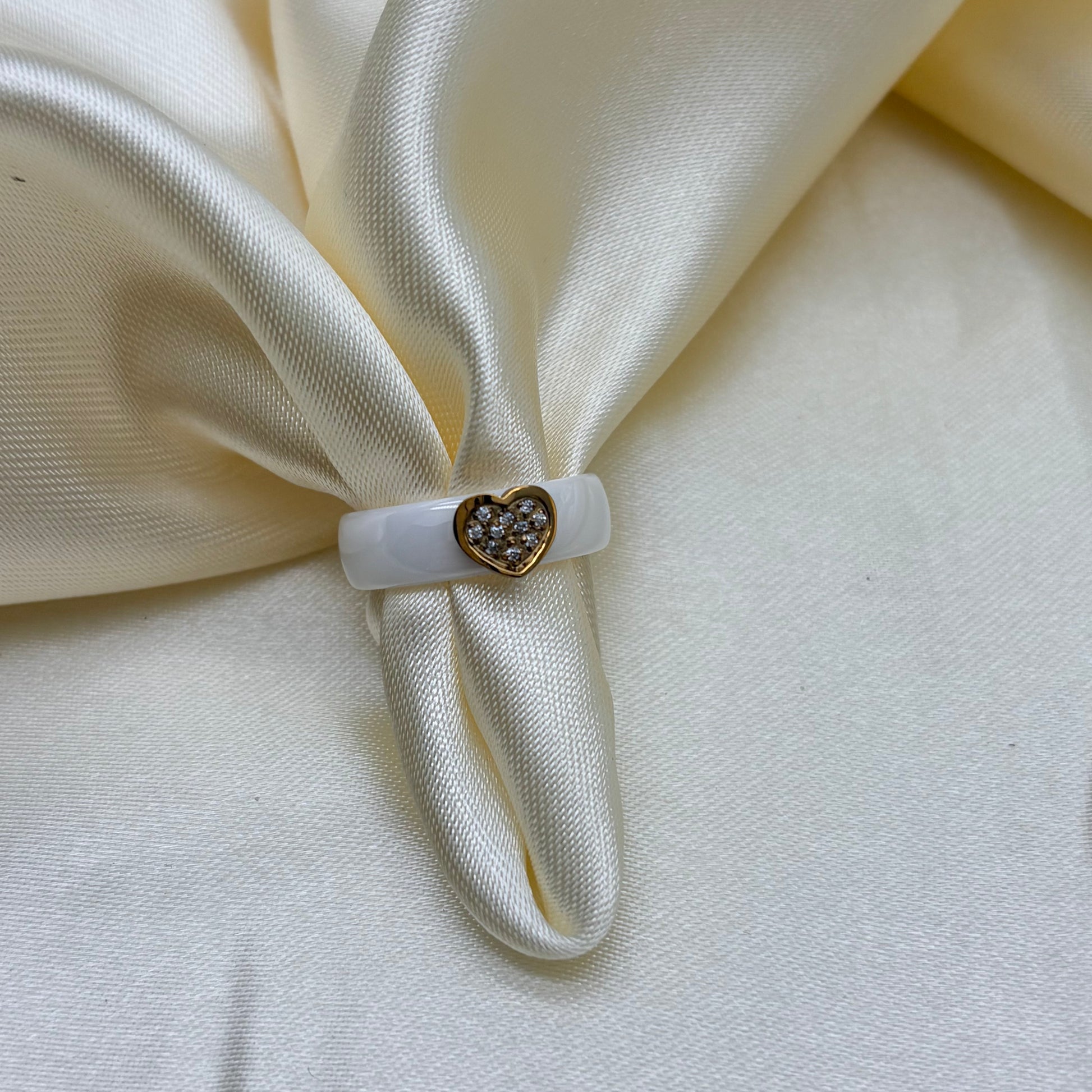 Anillo en acero y tungsteno blanco con dorado y piedra