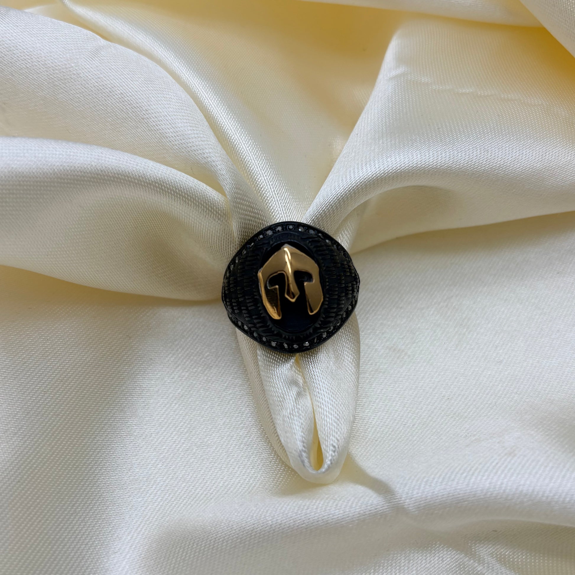 Anillo en acero gladiador negro figura dorada