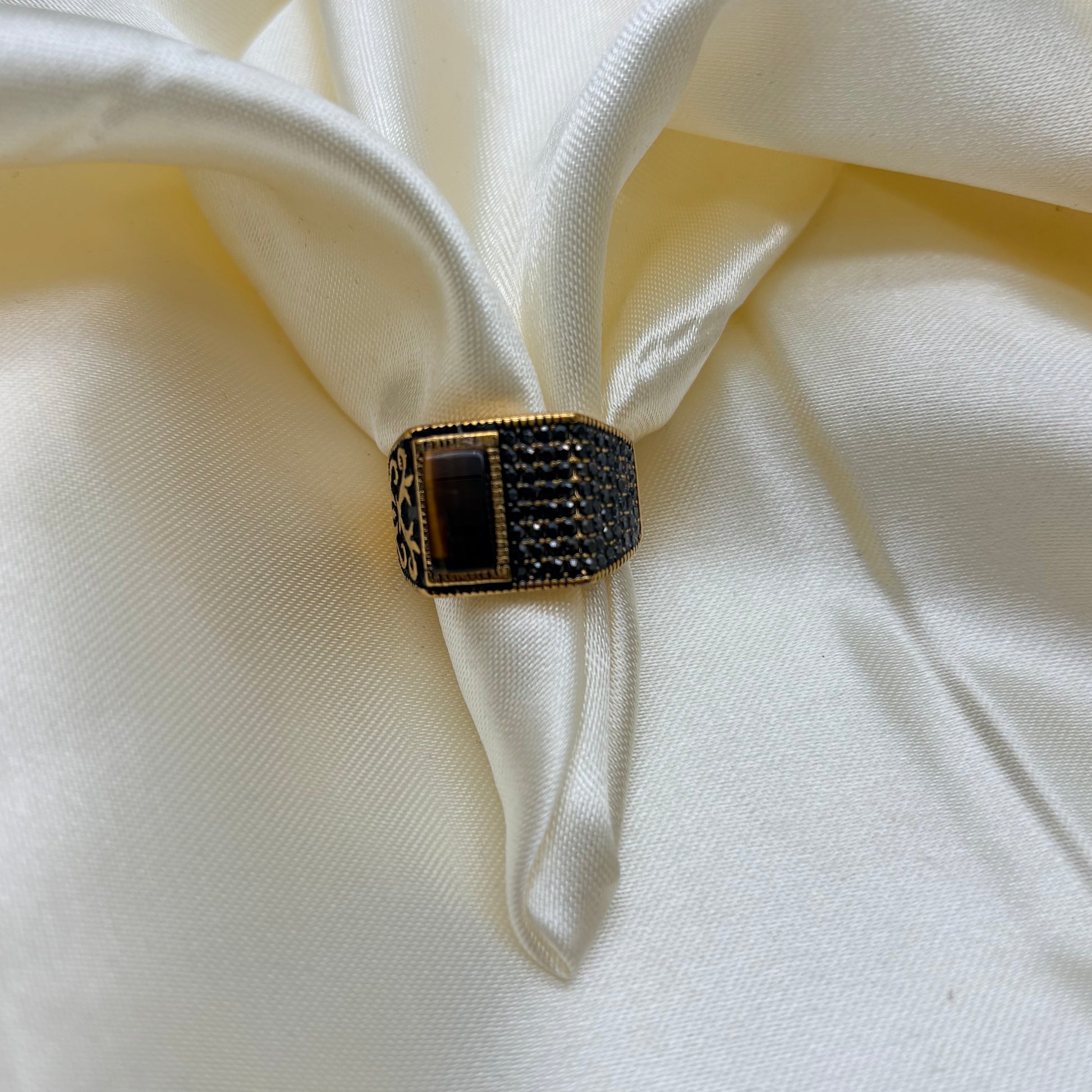 Anillo en acero dorado marquesita con piedra café