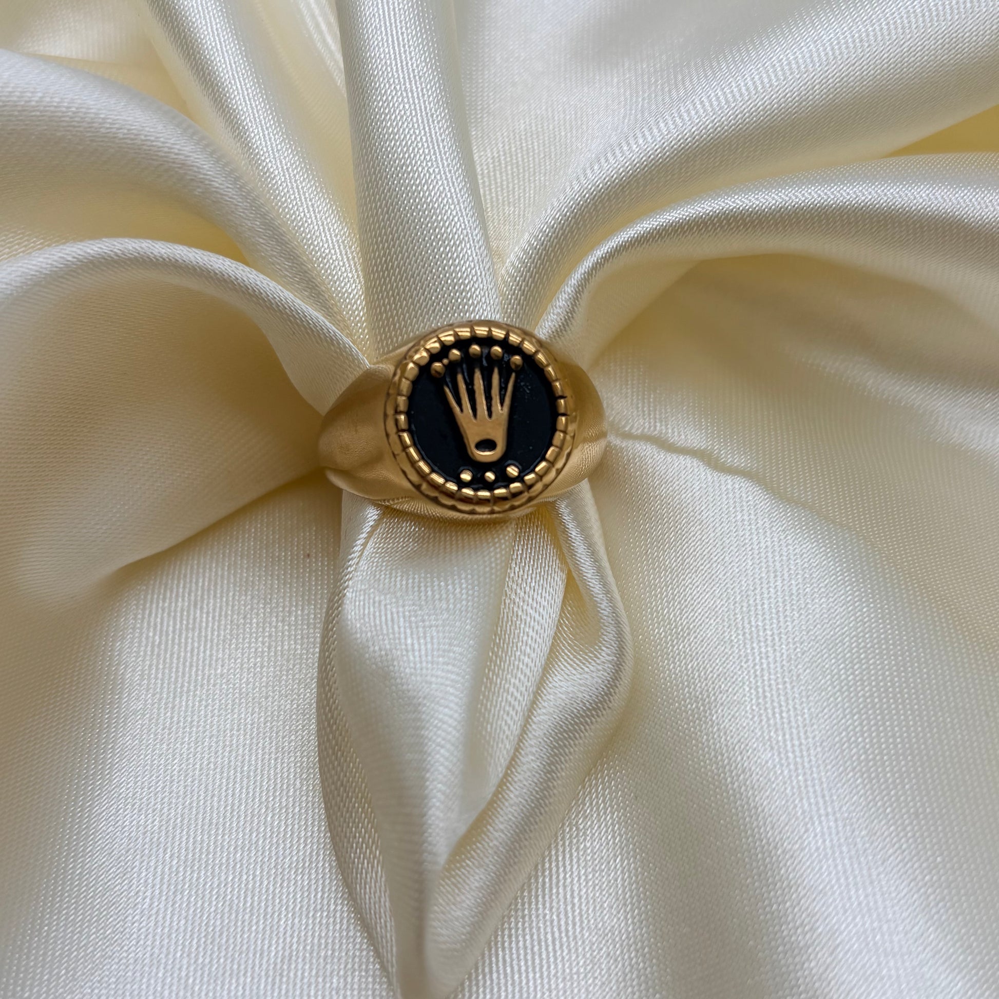 Anillo en acero dorado con corona y fondo negro