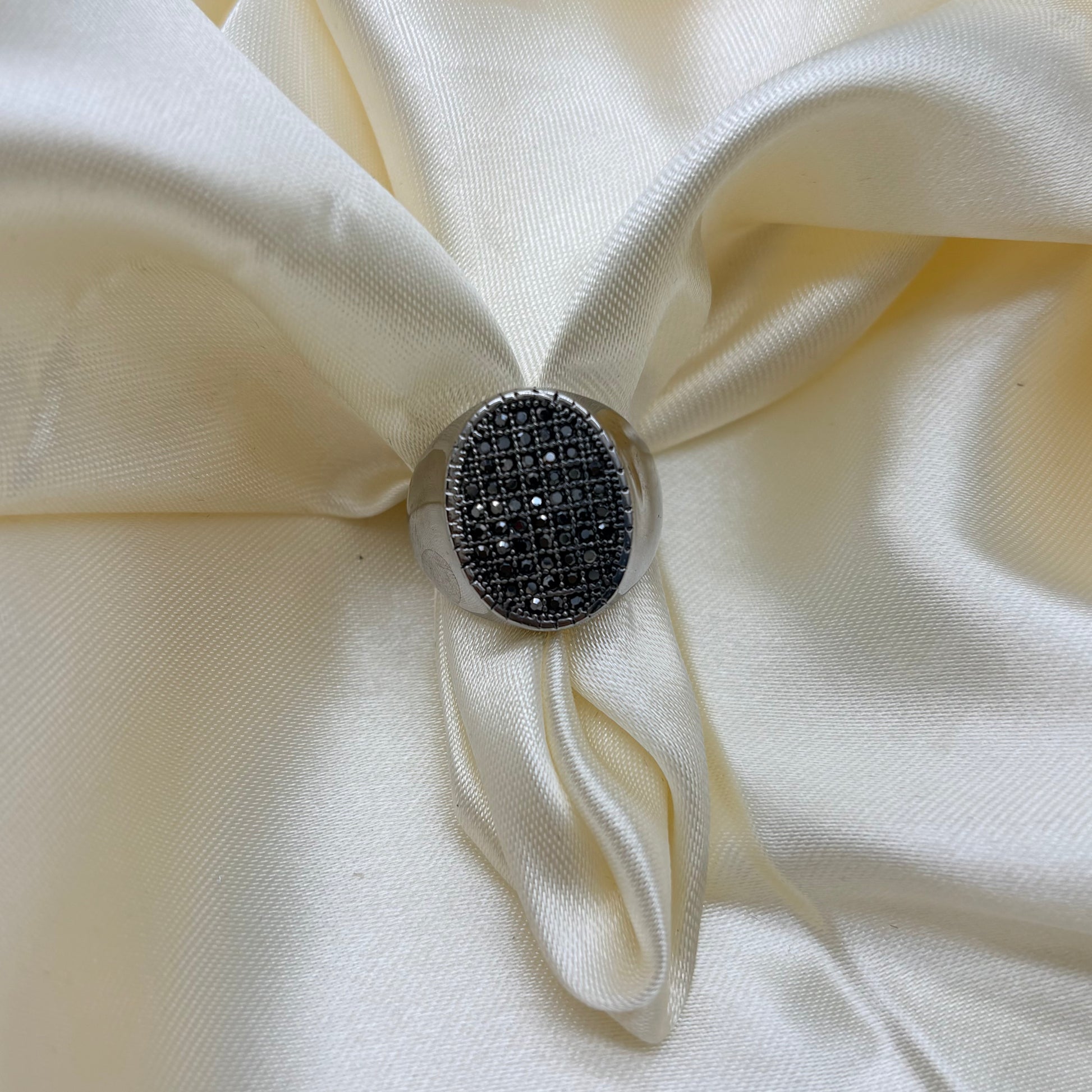 Anillo en acero plateado marquesita