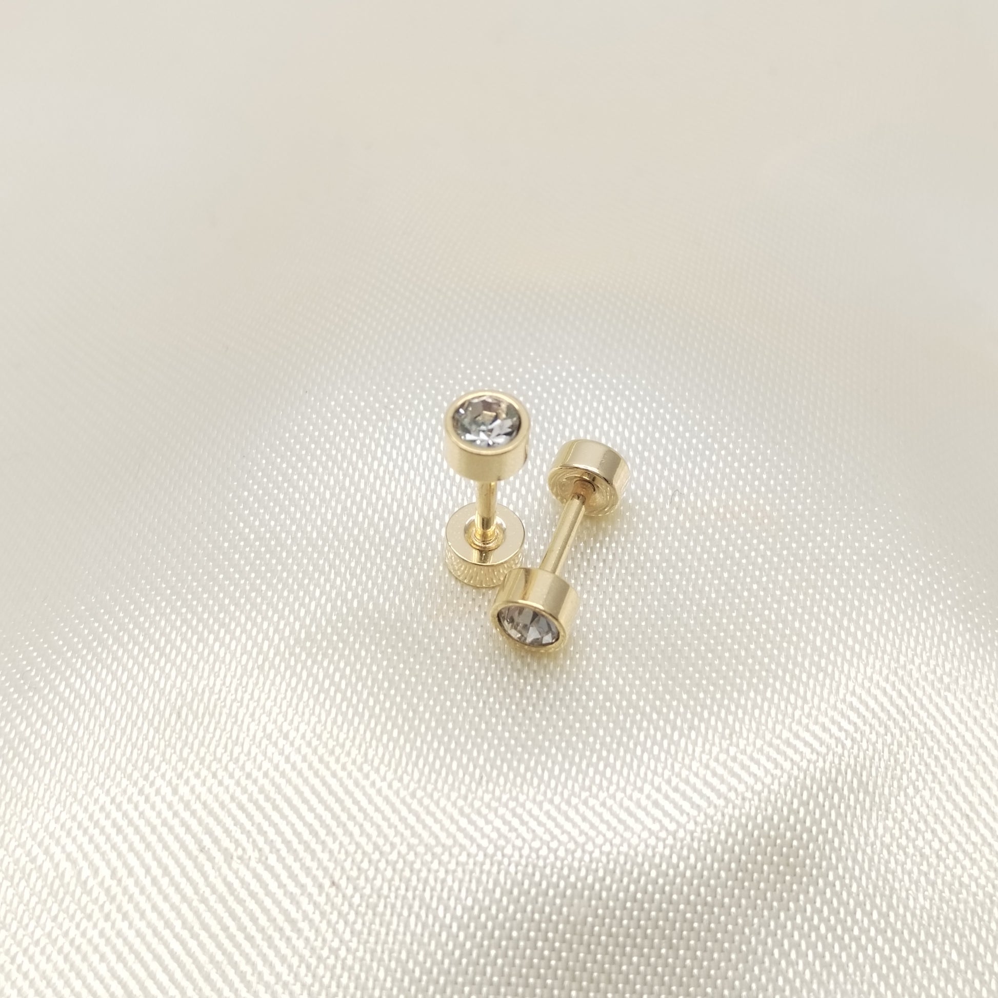 Arete topo en acero dorado con piedra