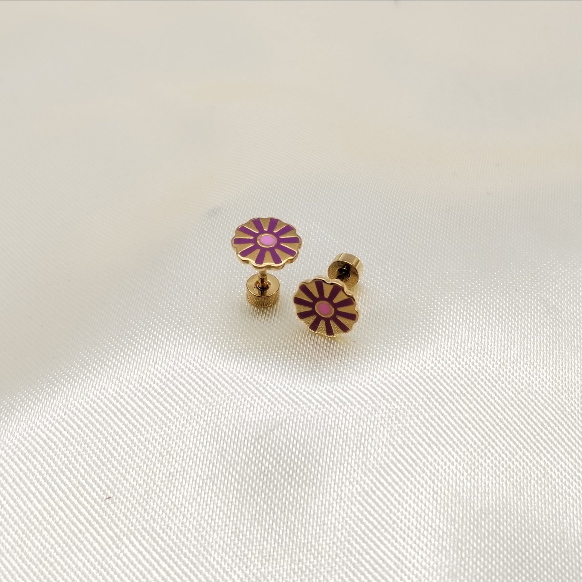 Arete topo acero dorado flor