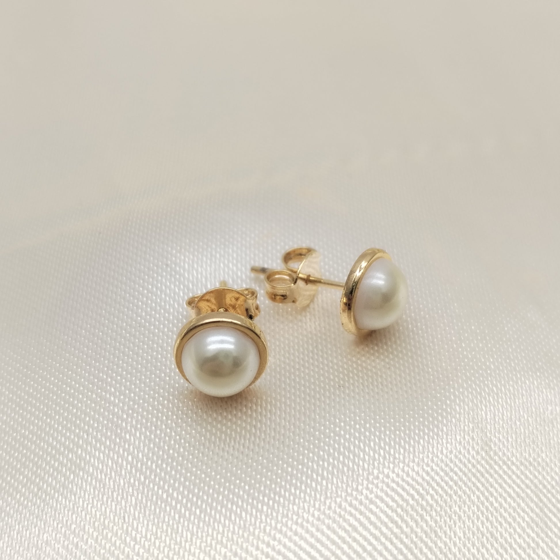 Arete topo mariposa en acero dorado de media perla