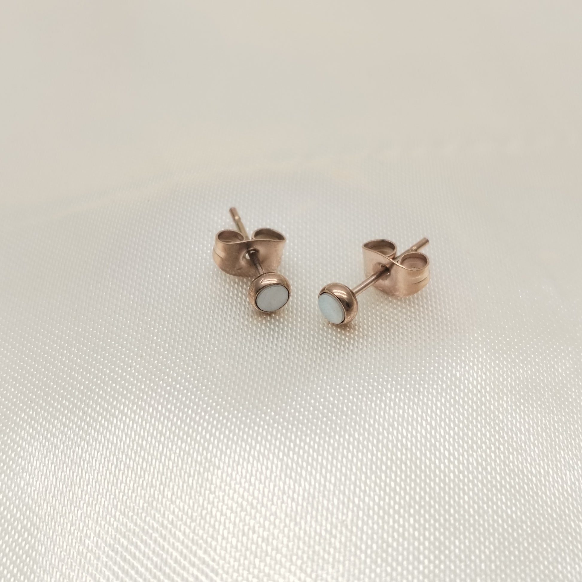 Arete topo mariposa en acero oro rosado