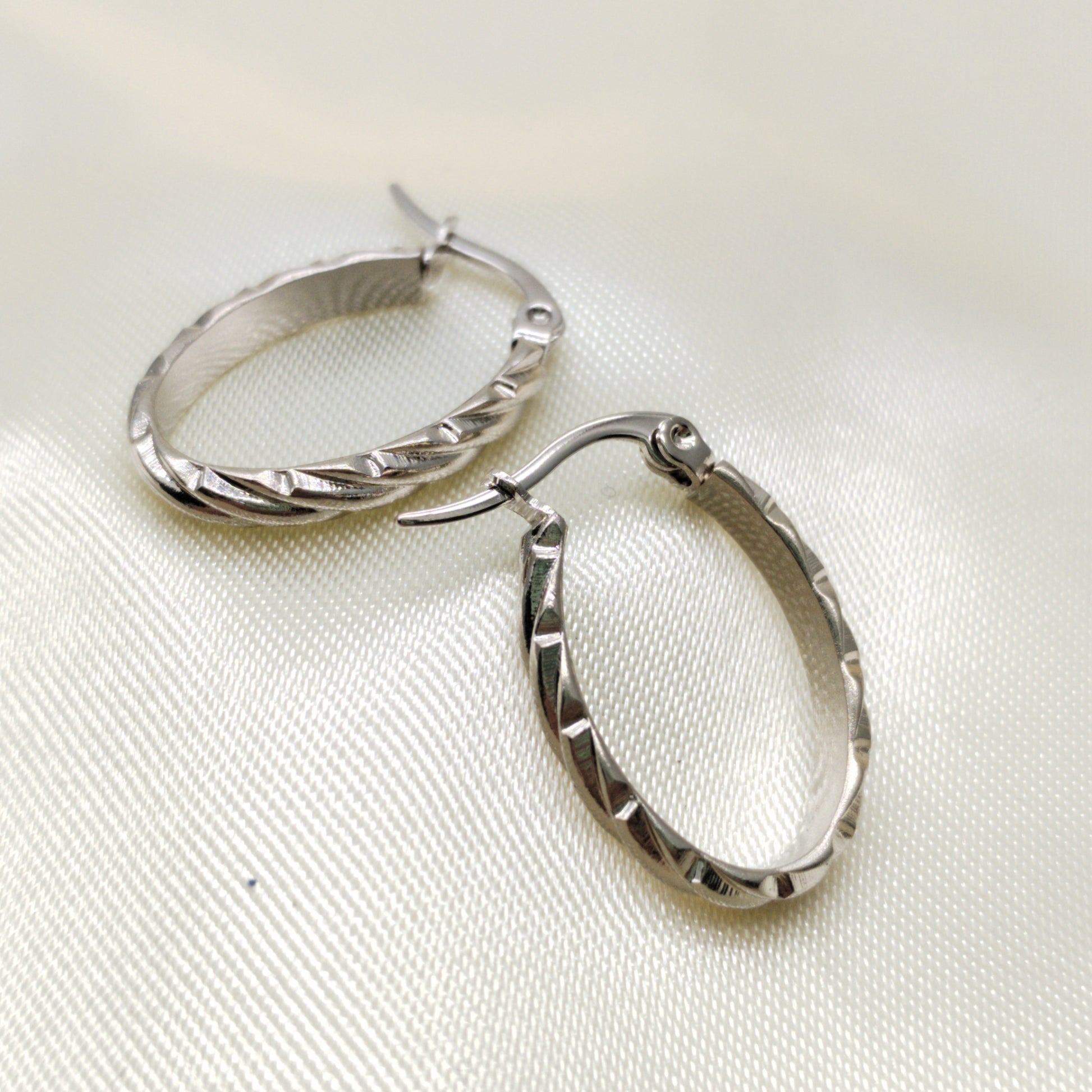 Arete argolla mediana labrado plateado ovalado