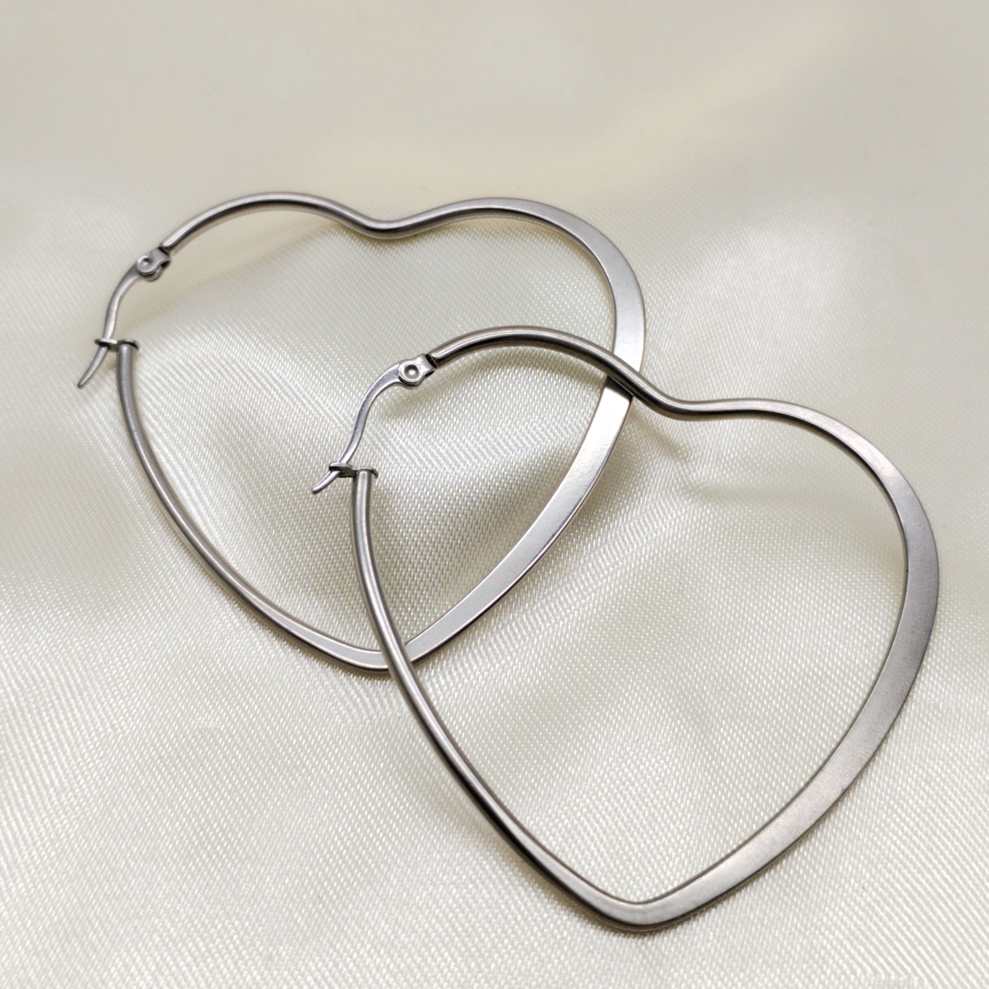 Arete argolla Corazón grande en acero liso